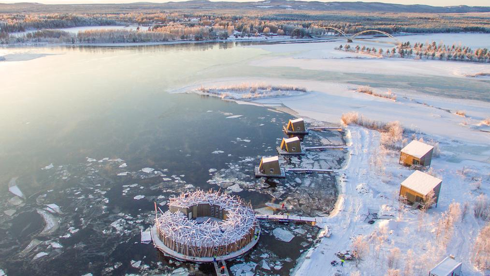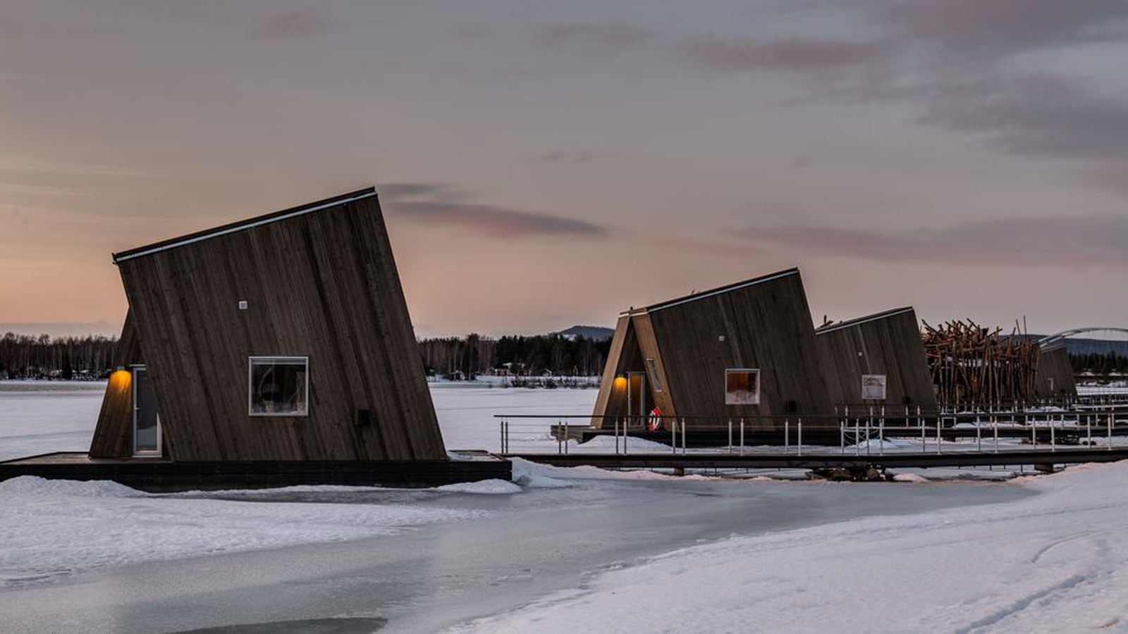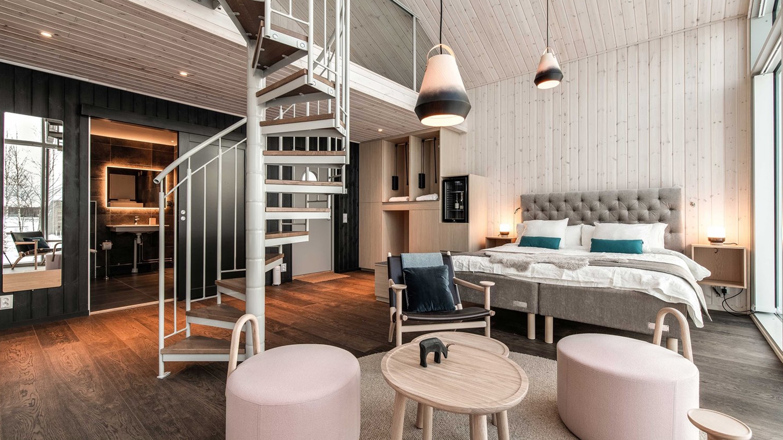 Set under the northern lights in winter, and the midnight sun during the summer months, this unique hotel set in the wilderness of Swedish Lapland encompasses suites and cabins, positioned on both land and over the Lule River. Created from sustainable materials, blending wood, stone and leather, the varied types of accommodation are connected by wooden walkways, with outdoor decks, underfloor heating and expansive windows.