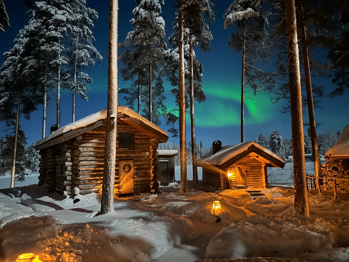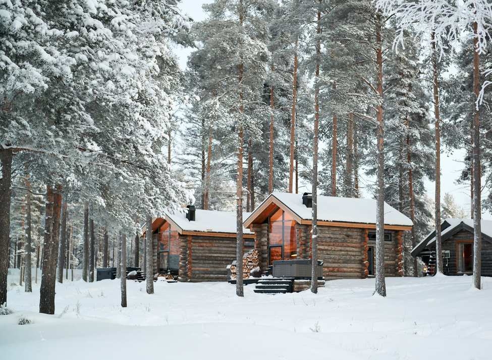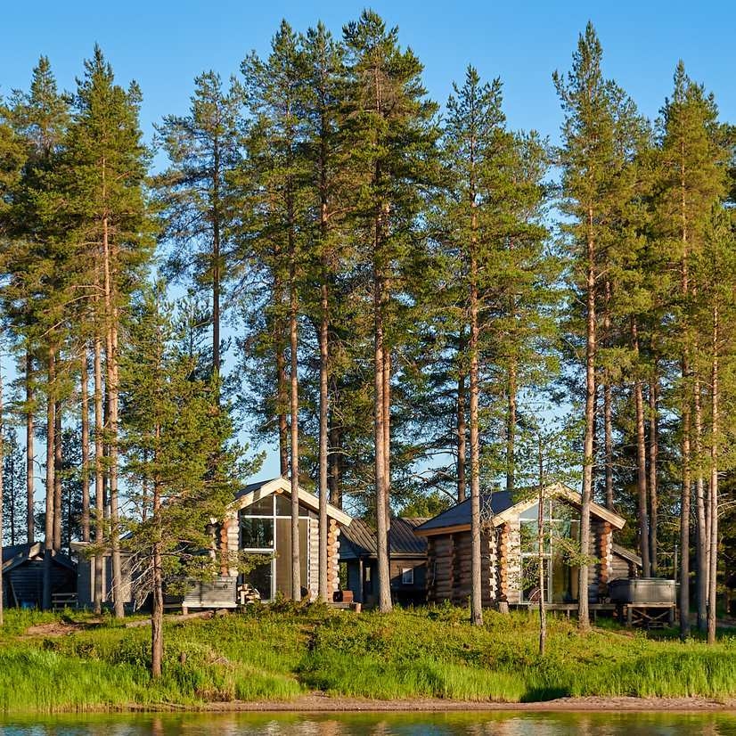 There are three log cabins, one of which is a family cabin sleeping up to four people. Each features a bathroom, fireplace and private outdoor Jacuzzi. Large panoramic windows allow you to enjoy your surroundings – the pale haze of an early morning and the sprinkling of stars on a clear night is truly magical. There is also a wood-fired sauna in a separate building.