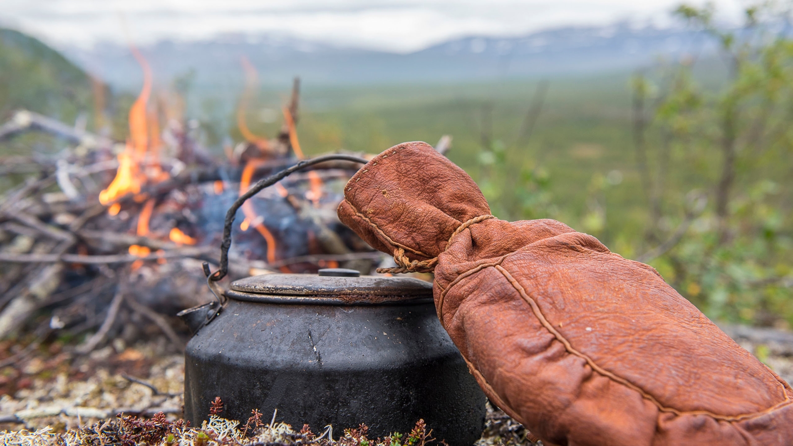There’s no electricity in the camp at all and during the winter light come from fire, candles, kerosene lamps and battery LED-lamps, but with the moon, stars and northern lights reflecting in the snow, it’s not as dark as you’d expect. In the summer, the camp perfectly placed for long summer days.