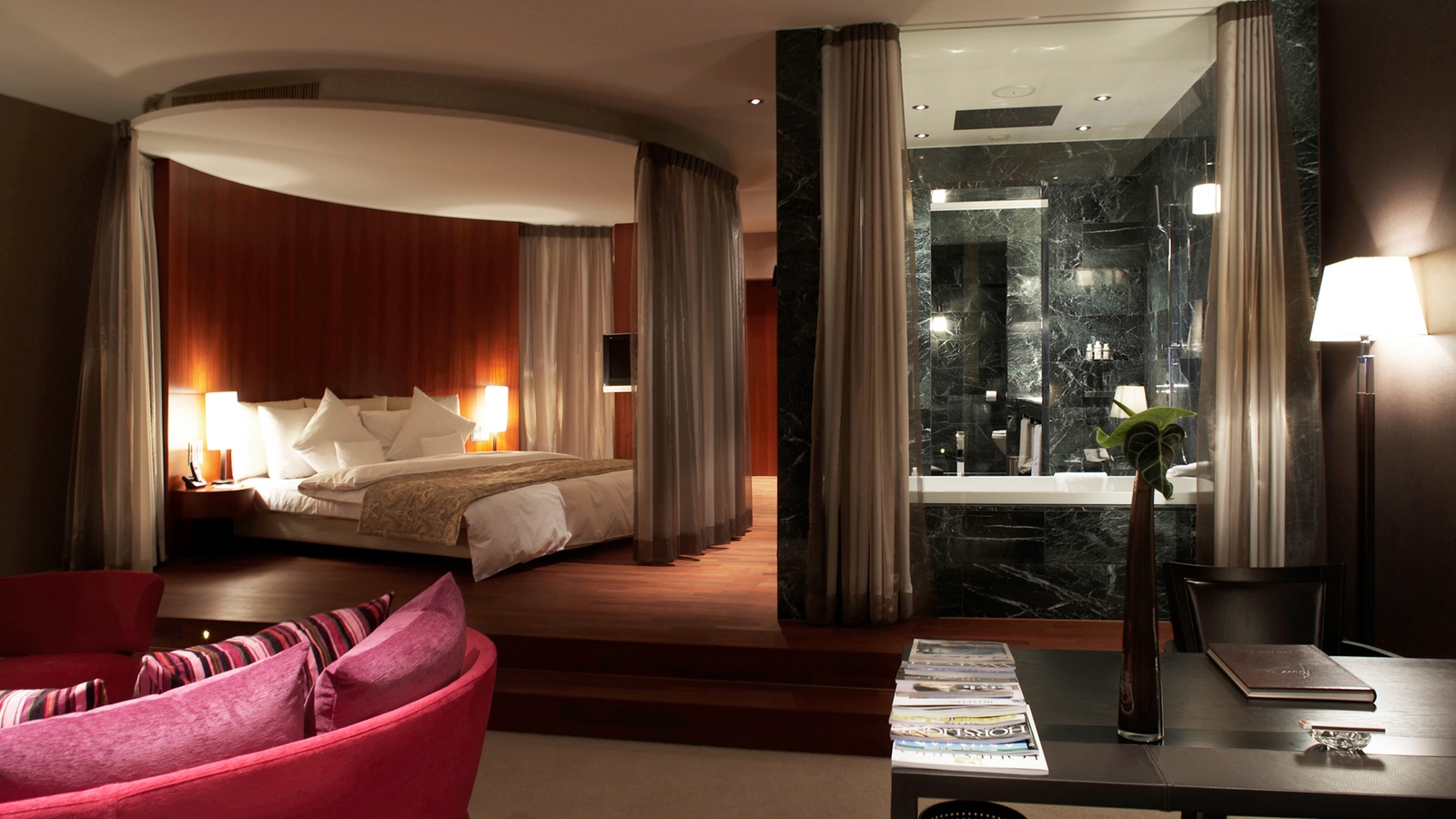 The hotel features 52 rooms and suites, simple and elegant in design with views of the lake and mountains, some featuring private balconies. The Mark Twain and Rachmaninoff suites are incredibly spacious, the latter spread over two levels and with its own private lift access.