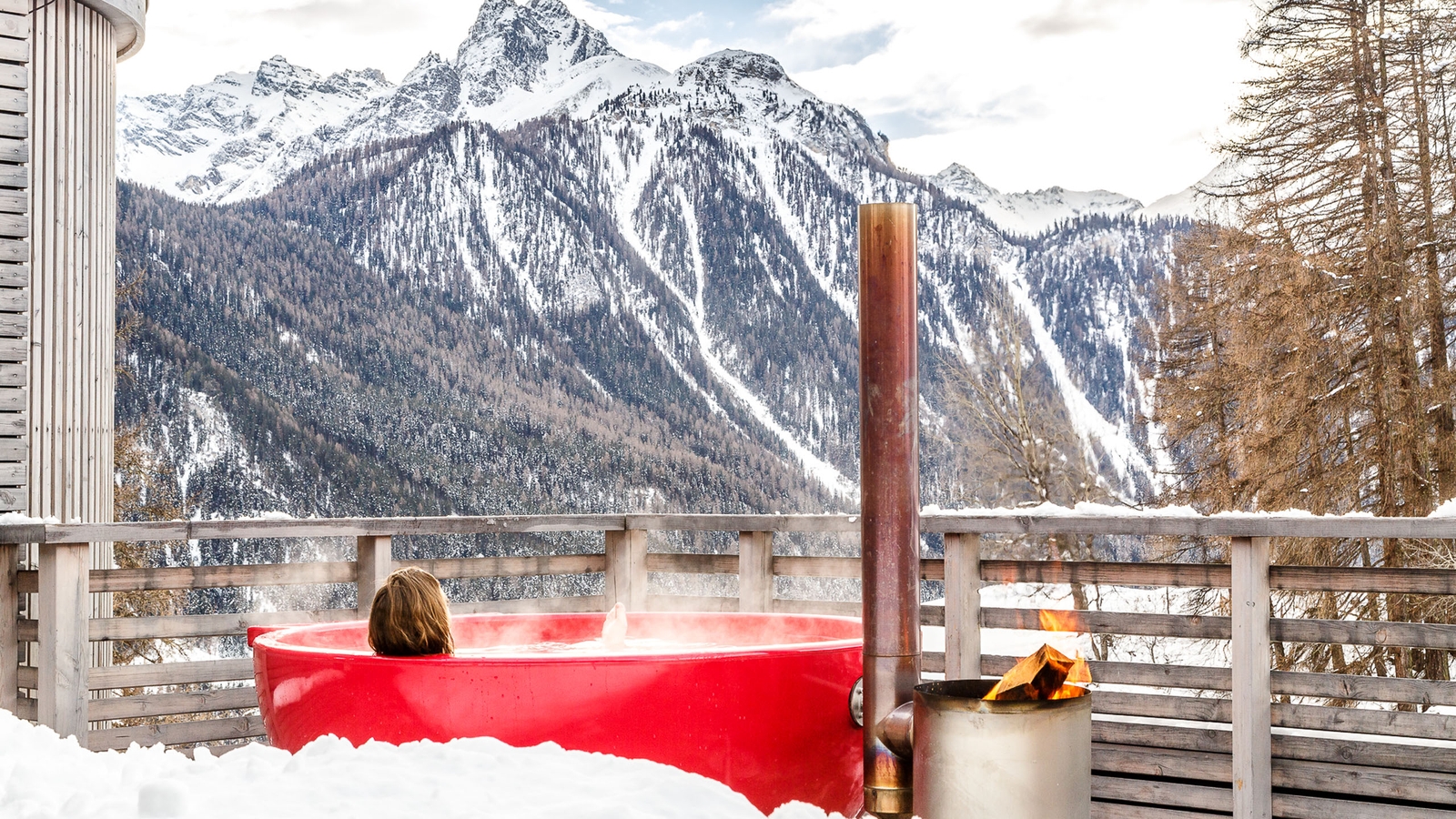 A chic mountainside hideaway, the Paradies sits in an idyllic alpine valley in Ftan that’s as beautiful covered in a blanket of snow in the winter as it is surrounded by flowering meadows in the summer months.