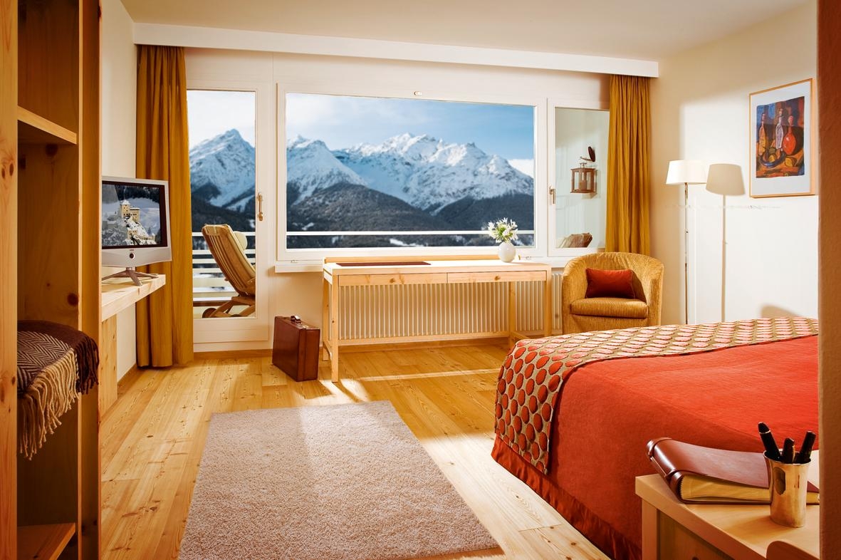 The hotel’s spa offers magnificent views of the Silvretta summit, a fine place to end up after a day of exploring the hiking and biking trails that start from here. And, in the winter, the pistes of the Motta Naluns ski resort are just a short ride away.