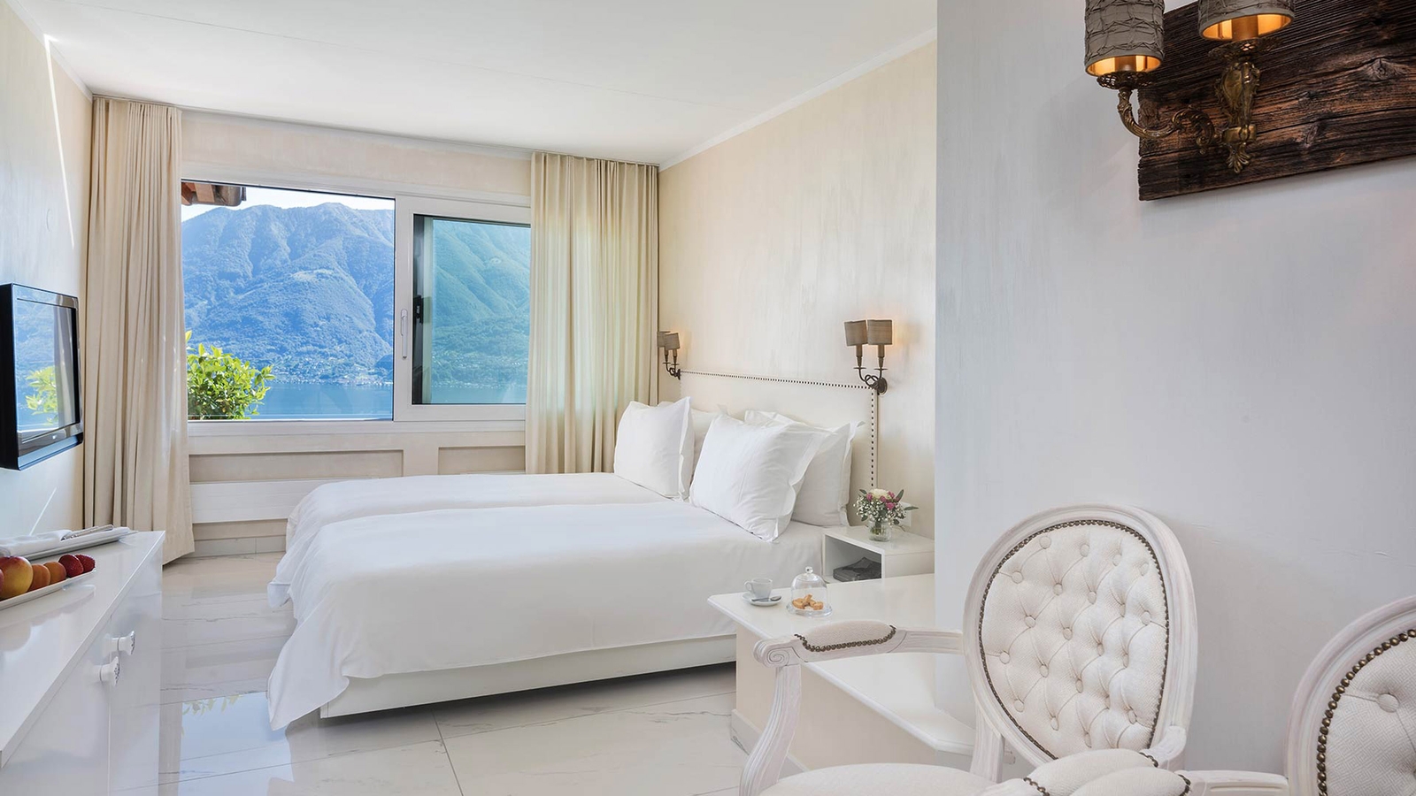 28 luxurious, modern rooms sit perched above the city of Locarno. Simple and elegant in design, they are characterised by a crisp white colour scheme and most come with a balcony from which to drink in the sweeping lake views.