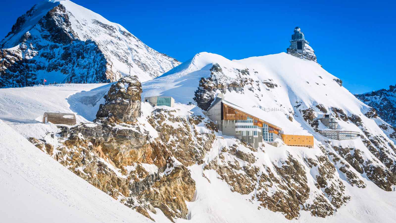 Well-known Jungfraujoch is an alpine viewing point located between the Mönch and Jungfrau mountains. To reach here, take the cog train from Grindelwald to Europe’s highest train station. At a spectacular 3,545 metres tall, this hilltop station offers sweeping views over the surrounding mountains. For a different vantage point, climbers can hike across the glacier to the Mönchsjoch hut alongside a private guide before returning to Grindelwald via train.