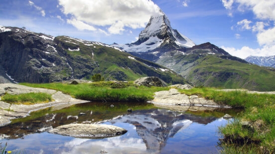 The Gornergrat railway is the highest open air railway in Europe, leading to the Monte Rosa massif and its glacier. Here lies the Matterhorn – one of the highest summits in the Alps and Europe – standing at an imposing 4,478 metres tall. For breathtaking mountain views, travellers can ascend to Hohtälli and Stockhorn in two successive cable cars. Alternatively, hiking enthusiasts are able to undertake the vertiginous walk from Gornergrat to Hohtälli on narrow mountain paths. Those who dare to make the crossing are rewarded with out of this world panoramas, and an unrivalled sense of achievement.