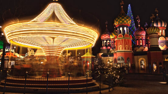 You might have heard the Danish term hygge, which refers to a state of warm and cosy contentment. This is the perfect word to describe Christmas in Copenhagen, with its snow-covered cottages and cobbled streets. In wintertime the gardens and merry-go-rounds of the Tivoli amusement park are adorned with sparkling fairy lights, and seasonal markets inundate the streets. We highly suggest curling up with a coffee and a Danish pastry.