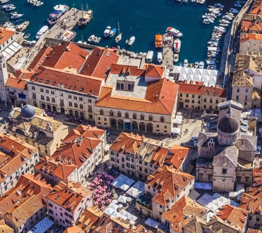 Take a pleasant walk through Dubrovnik’s Old Town. It was named a UNESCO World Heritage site in 1979, and a magnificent curtain of walls surrounds marble streets and baroque buildings that exude a pearly light in the Adriatic sun. The main pedestrian thoroughfare, Placa, is a mélange of cafés and shops with outstanding monuments at either end. Churches, monasteries, and museums ornamented with finely carved stone recall an eventful history and a vibrant artistic tradition.