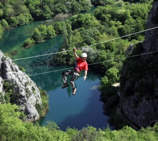 Get the heart pumping as you descend through the canyon along a steel wire rope, secured with a belt. After a safety briefing you will make your way to the canyon of the Cetina River, passing through beautiful natural scenery. One guide will hook you up at the beginning of each wire while another waits for you at the other end. There are eight wires covering 2100m and you’ll whizz your way down each one to the finishing point.