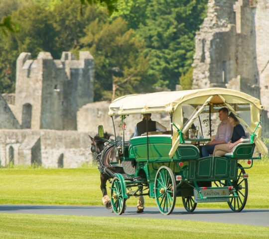 Settle into a beautifully appointed carriage for a meandering 45-minute exploration of Adare Manor’s enchanting 840-acre estate. There are many touches included to ensure a relaxed and comfortable journey, from toasty Irish lambswool blankets to an elegant table equipped with wine coolers and cup holders. You can pre-order drinks with the team before setting off on your tour – perhaps a bottle of champagne or a warming Irish coffee.