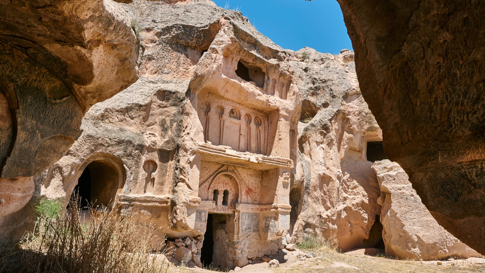 Lastly you will visit Zelve, where three canyons meet in the Valley of Monks. The rock face at Zelve is honeycombed with caves and churches, and much of the decoration inside the churches is symbolic. You will visit the two most interesting churches: the Church of Grapes and the Fish Church.