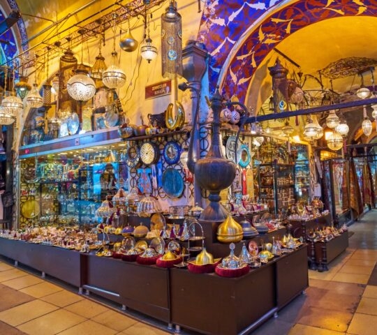 Explore the Grand Bazaar, Turkey’s largest and oldest covered Bazaar with more than 4,000 shops. A variety of Turkish handicrafts, oriental carpets, rare jewels, textiles, cotton towels, Iznik tiles and inexpensive souvenirs can be found, all sold in small shops next to each other.