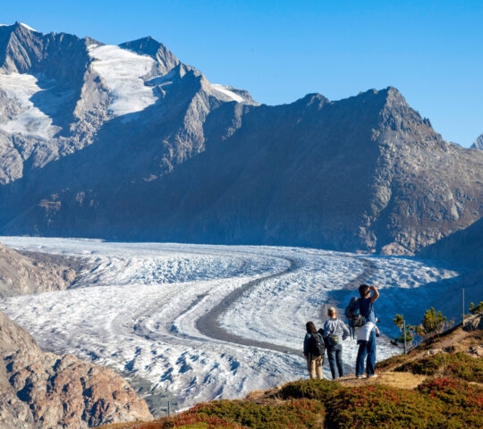 The Swiss Alps comprise about 2000 square kilometres of glaciers. Most typical are the valley glaciers, of which the Aletsch Glacier is the most extensive in Europe. The jewel of UNESCO’s Jungfrau-Aletsch World Heritage Site, it is a spectacular sight where an endless stream of ice makes its way towards majestic peaks.