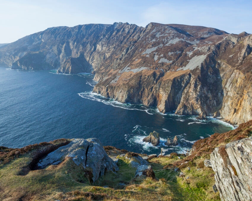 Sweeping down from the mountain of Slieve League are some of the highest cliffs in the world. From the top it’s a steep 609m to the Atlantic down below. The nearby centre is full of information on the cliffs and surrounding areas.