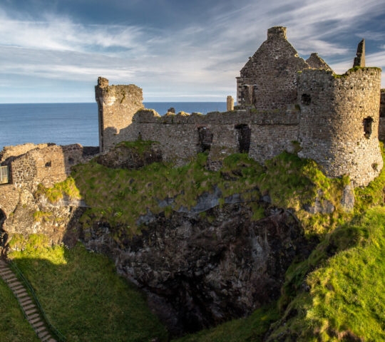 An atmospheric ruin, set against on a steep cliff edge in north County Antrim, Dunlace Castle is imbued with myth and fable. The castle dates back to 1500, when it was made by the MacQuillan family. A local legend says that the castle was abandoned after the kitchen collapsed into the sea, taking the cooks with it. The mystery of the castle has inspired writers and filmmakers alike: from C.S. Lewis’s Narnia to the TV series Game Of Thrones.
