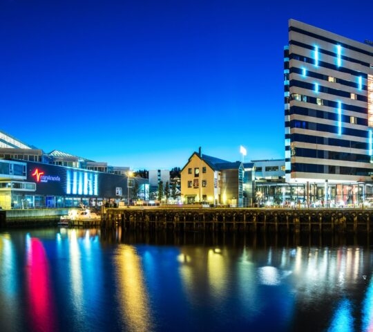 Located on an island connected by bridges to the mainland, the centre is famous for its charming, old wooden houses, cathedral and ancient cinema. The atmosphere is as lively as you’d expect of a bustling port town, which is also the site of the most northerly university on the planet. You’ll also find many fine restaurants, cafes and bars here.