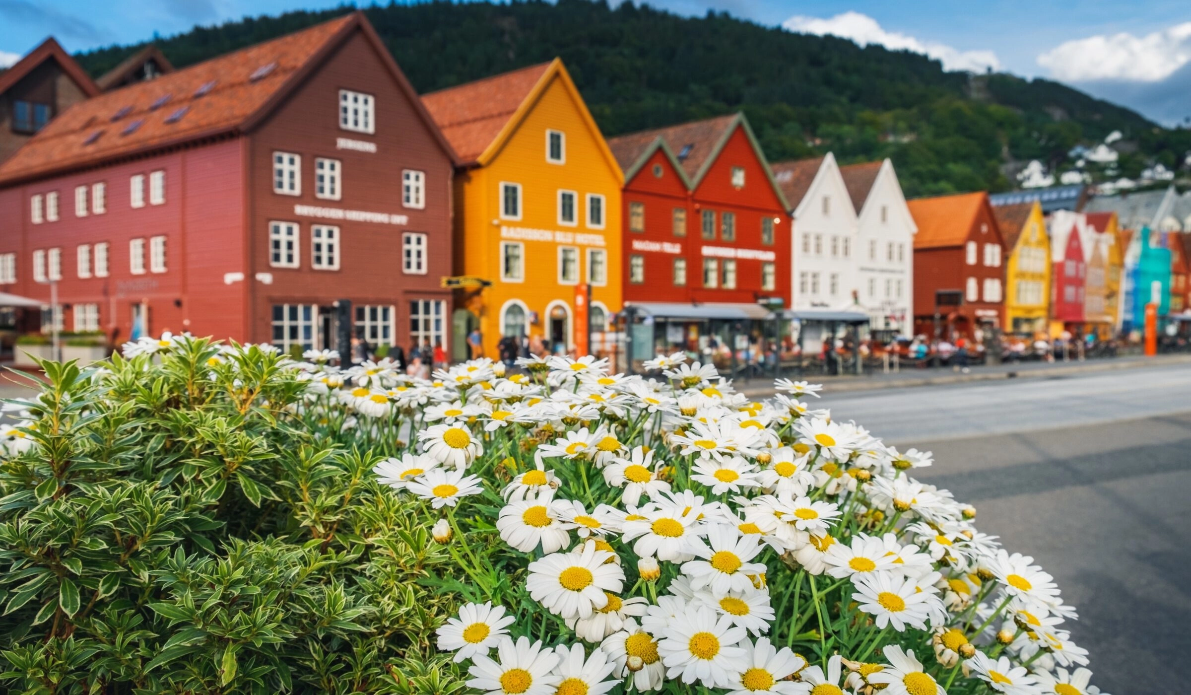 You’ll start your exploration on land, specifically in Bergen, Norway’s UNESCO gateway city to the fjords. Filled with history and tradition, this big city enjoys a small-town charm and is easily explored on foot. Stroll around the fairy-tale-like old cobbled streets and small wooden houses and discover Bryggen Hanseatic Wharf, defined by a line of colourful heritage buildings, as well as the city’s fish market, and take a trip up the funicular to Mount Floyen for remarkable views back across Bergen.