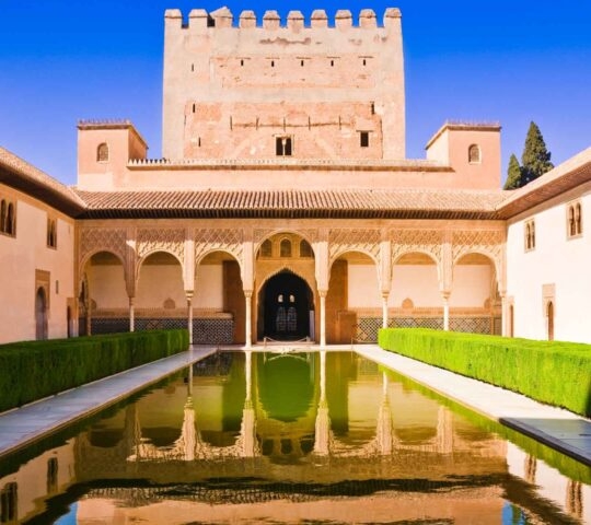 The lavish Alhambra is Granada’s most visited site. Once a palace and fortress for the city’s Muslim rulers, the Alhambra means ‘red fort’ and is named after the red clay used in its construction in the mid-13th century. The Generalife was the country residence of the Nasrid king and the recreational courtyard and its beautiful gardens sit on the slopes of the Cerro del Sol, offering spectacular views.