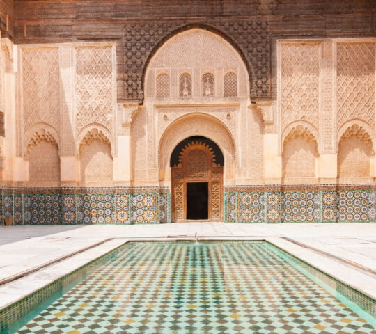With its rich atmosphere, fascinating history and rich Berber culture, the city of Marrakesh encapsulates what draws people from around the world to Morocco. Near one thousand year old red walls surround the historic medina, with monumental gates leading through to a warren of winding alleys. It’s here you’ll find Marrakesh’s vibrant souks, markets and artisan workshops selling fragrant spices, leather-ware, jewellery, Berber carpets, spices, fabrics, lamps, pottery and more. The centrepiece is Jemaa el-Fnaa, a bustling market place square that hosts storytellers, musicians and performers in what is an unforgettable nightly spectacle.