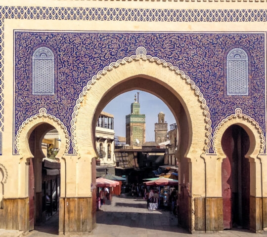 The city of FesMorocco’s second largest, is considered to be its cultural and religious capital. Divided into three districts, the oldest and most fascinating is Fes el Bali. Founded in the 9th century, venturing through its vast gates into the medina is like stepping back in time. Its dense maze of some 9,000 alleys are plied by donkeys and hand-pulled carts (said to be the largest car-free urban area in the world), with narrow passageways leading through beautiful squares, into the middle of a spice-scented food market or to a dead end and the ruins of an abandoned house. Head up to a rooftop terrace to really appreciate the maelstrom at street level.