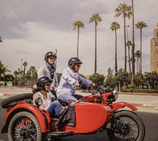 In the Medina’s beautiful maze, through the ancient French neighbourhood or in the mythical palm grove, Marrakesh is full of surprises. A vivid flea market, secret gardens behind closed doors, old art deco buildings or khettaras in the palm grove are just a few of the many hidden treasures your rider guide will introduce you to on this unusual open-air ride aboard a vintage motorbike and sidecar outfit. Your ride is tailor-made and off the beaten path, respectful of the local culture and all inclusive to offer you a memorable experience.