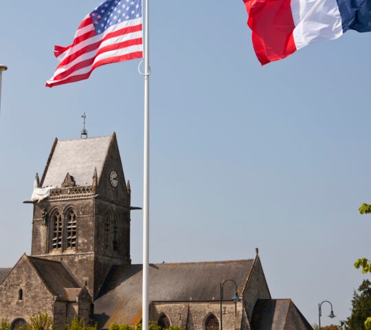 Visit the small town of Sainte-Mère-Église where paratroopers of the 82nd Airborne Division landed during the first hours of June 6th. One of them, John Steele, was captured by the Germans but escaped to join the attack on the village, making it one of the first places to be liberated in France.