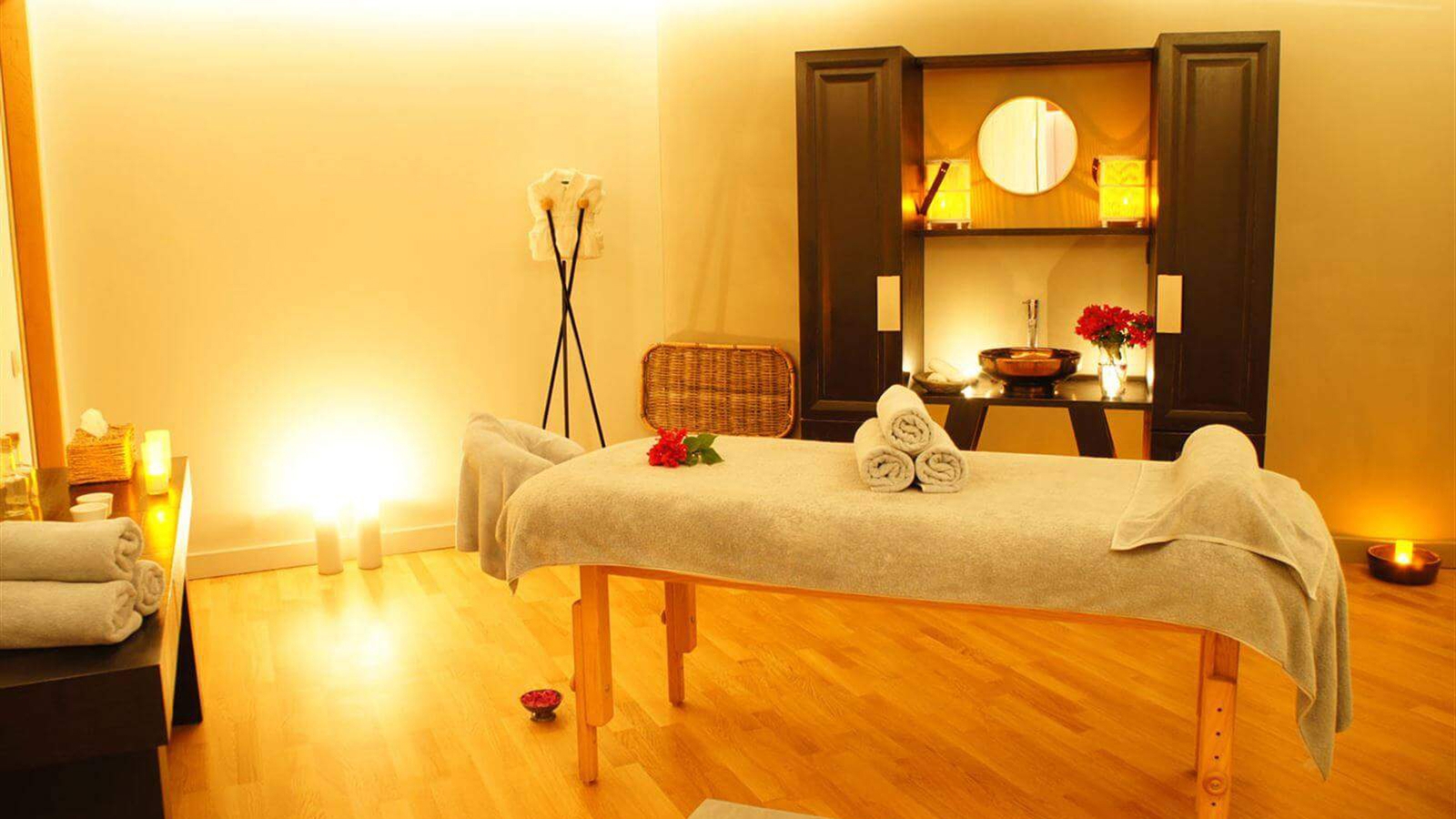 Recovery after the revelry can be experienced at the on-site spa of candle-lit cream treatment rooms. Guests have access to a steam room, plunge pool, therapy baths, and a selection of therapeutic and beauty treatments. Alternatively, you can sweat it out in the gym, or seek refreshment in the infinity pool, enfolded by cabanas, or take to the salty waters for a paddle.