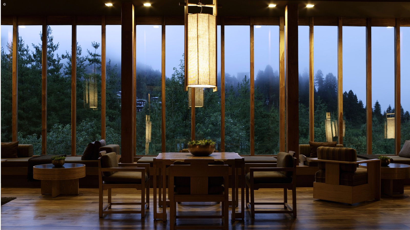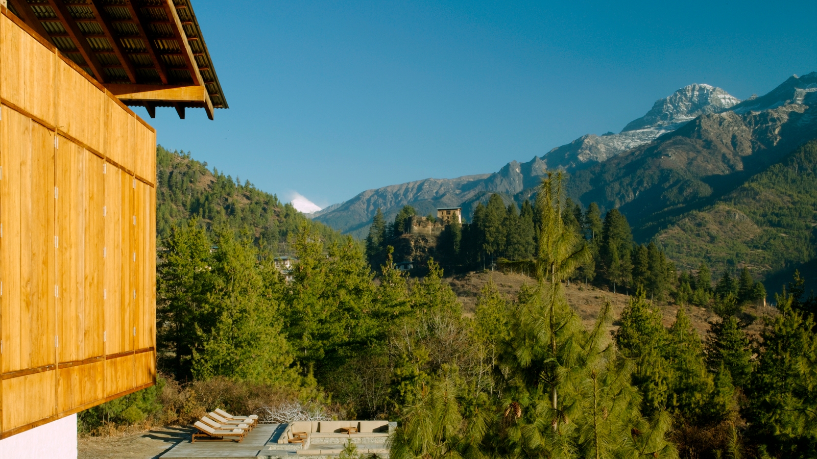 Situated in Balakha Village, the Amankora Paro contrasts rustic elements with contemporary design. Its pleasing features include natural rammed-earth walls, gently sloping roofs, wood-panelled interiors and spectacular views of blue pine forests, the 17th-century Drukyel Dzong and Mount Jhomolhari.