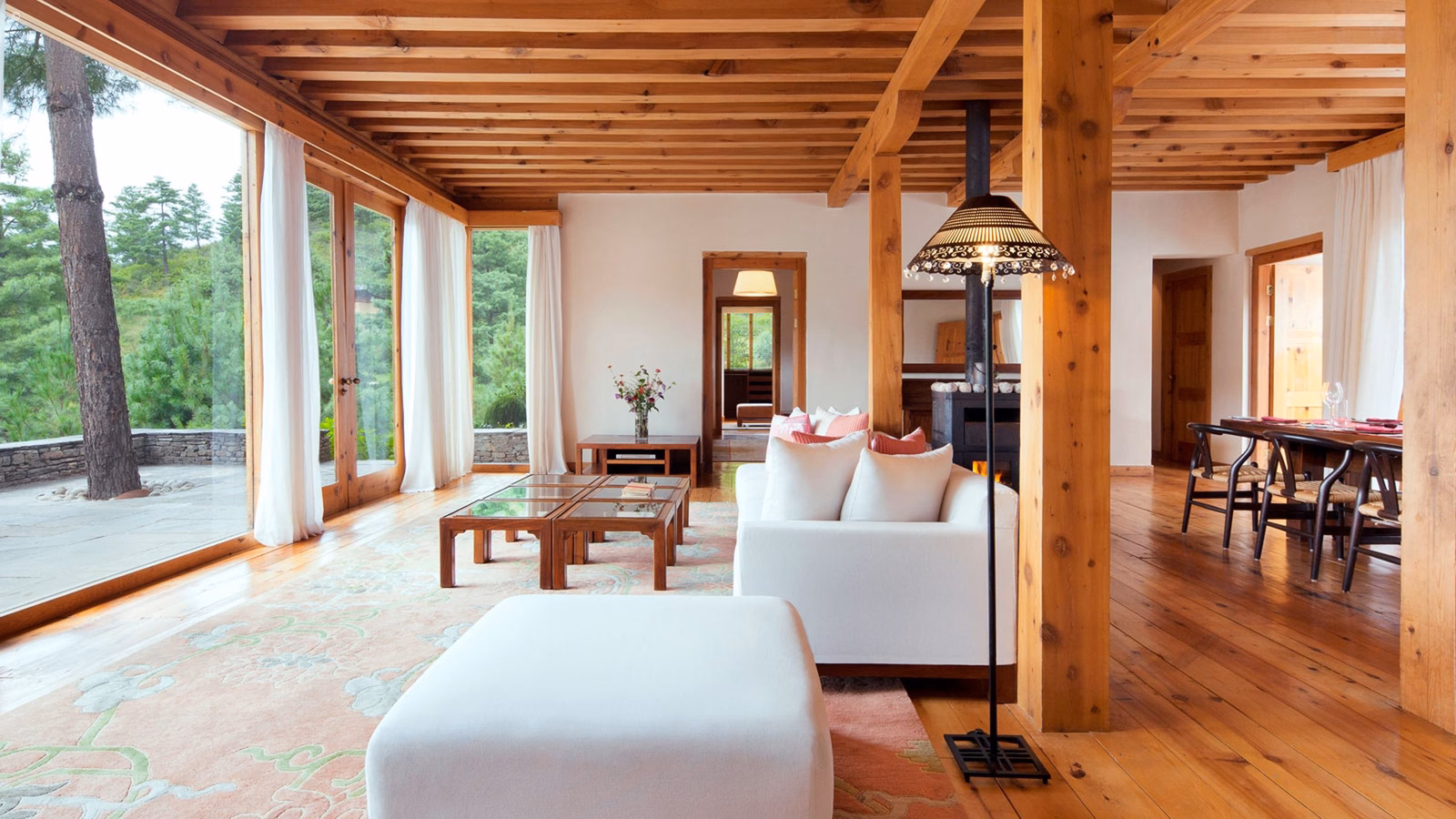 29 suites including private villas can be found amongst glades planted with azaleas, and each suite features a traditional wood-burning stove. The circular dining room offers a unique atmosphere for dinners while a cosy bar and lounge afford complete relaxation.