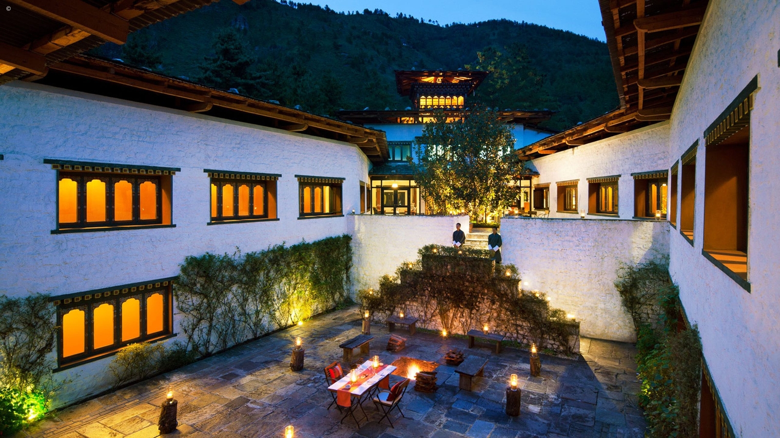 Located on a 38-acre site sitting on a forested mount, Uma Paro was once the home of a Bhutanese nobleman and is a resort of exceptional style and elegance. The building, one of Bhutan’s only boutique hotels, features handcrafted stone, wood and tiles and white walls vividly painted by local artists.