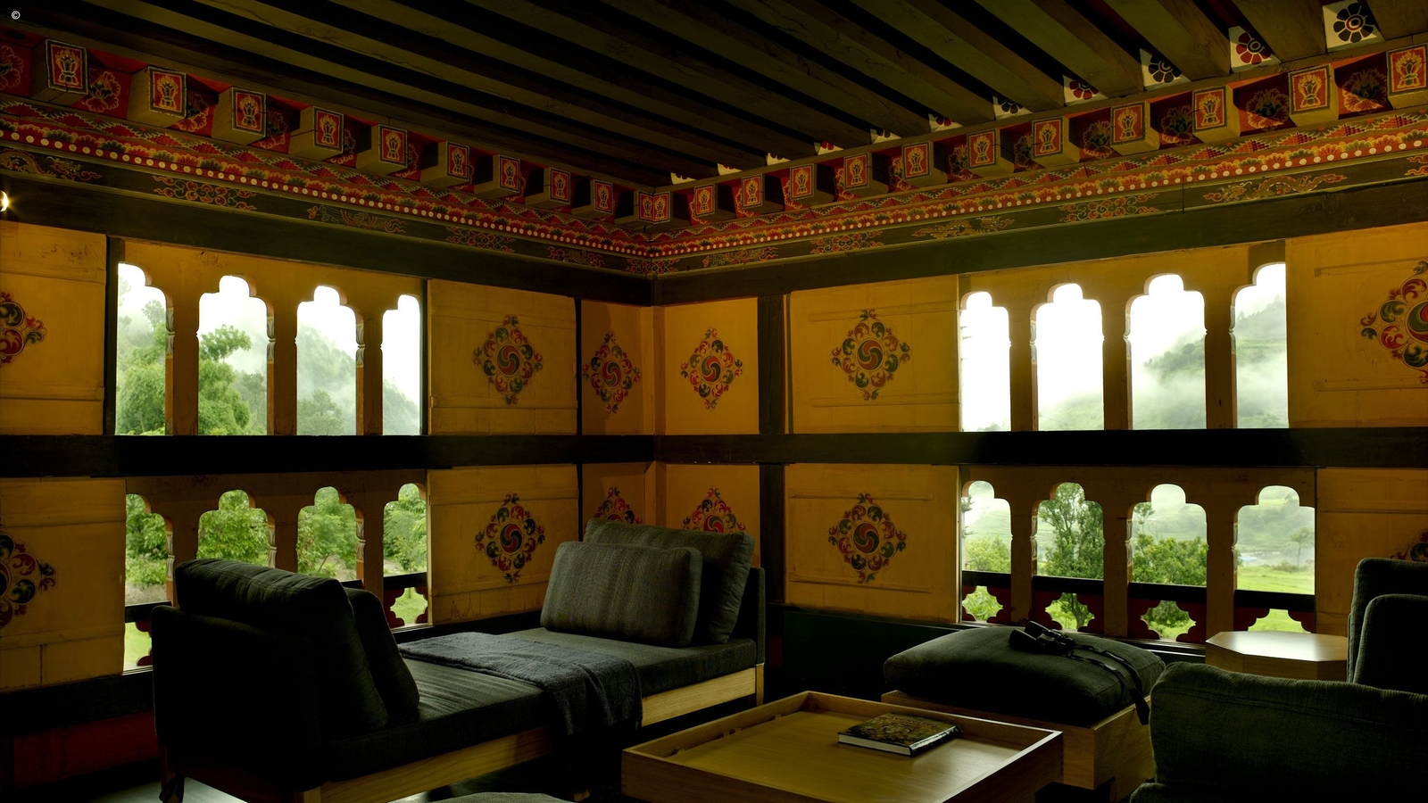 Wrapped in lush rice fields and fruit orchards by Mo Chhu River, with views to the seventeenth century Punakha Dzong, is a former traditional Bhutanese farmhouse: the Amankora Punakha hotel.