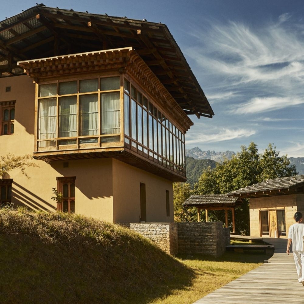 The communal areas of the lodge include the living room and lounge and the exceptional Ari restaurant that serves up inspired cuisine, influenced by both international and Bhutanese flavours. The restaurant is situated indoors but there’s also an outside dining area where fires burn late into the night so that guests can spend the evenings under the stars. The Six Senses spa and wellness centre is a haven of rejuvenation and relaxation. There are three treatment rooms, a gym, two meditation huts and yoga facilities. The outside heated pool, curved and raised is a wonderful place to relax or enjoy some exercise with stunning views.