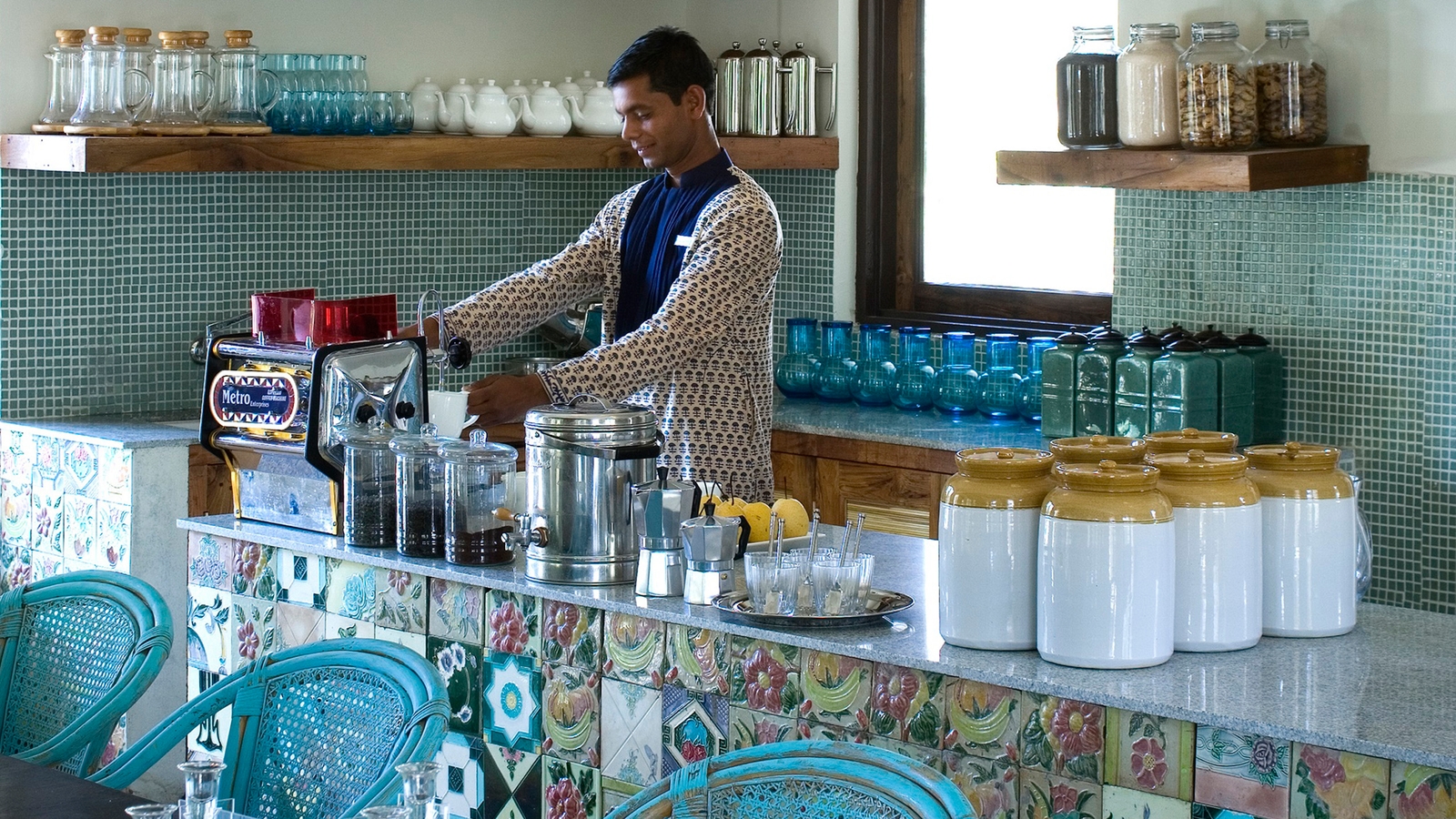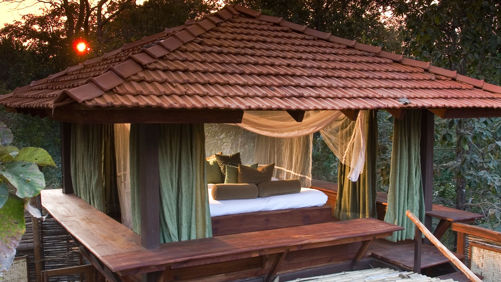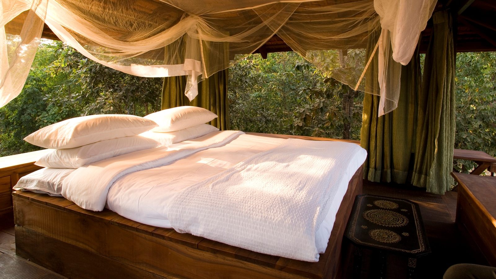 The highlight here is spotting the wildlife, but when you’re back at the lodge, take a dip in the pool that overlooks the stream and enjoy central Indian cuisine at the restaurant. You can even have a go at mastering the different blends of spices during a cooking class. For a really special experience, enjoy a private meal under the stars.