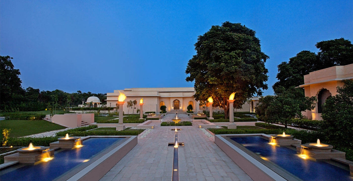 The resort combines traditional Rajput and Mughal architectural elements with beautiful gardens and modern touches. Accommodation ranges from private villas to opulent tents, some with a private pool, and luxury rooms. All rooms, tents and villas are exquisitely adorned, with hand crafted, traditional design features, and many enjoy forest views.