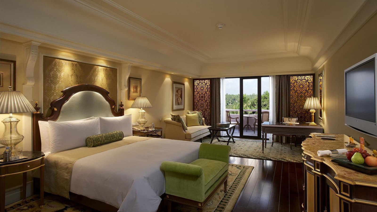 There are 254 rooms and suites, all large and handsomely furnished with Regency-style furniture and Indian miniatures adorning the walls. Bathrooms too are spacious with stand-alone baths and walk in showers.