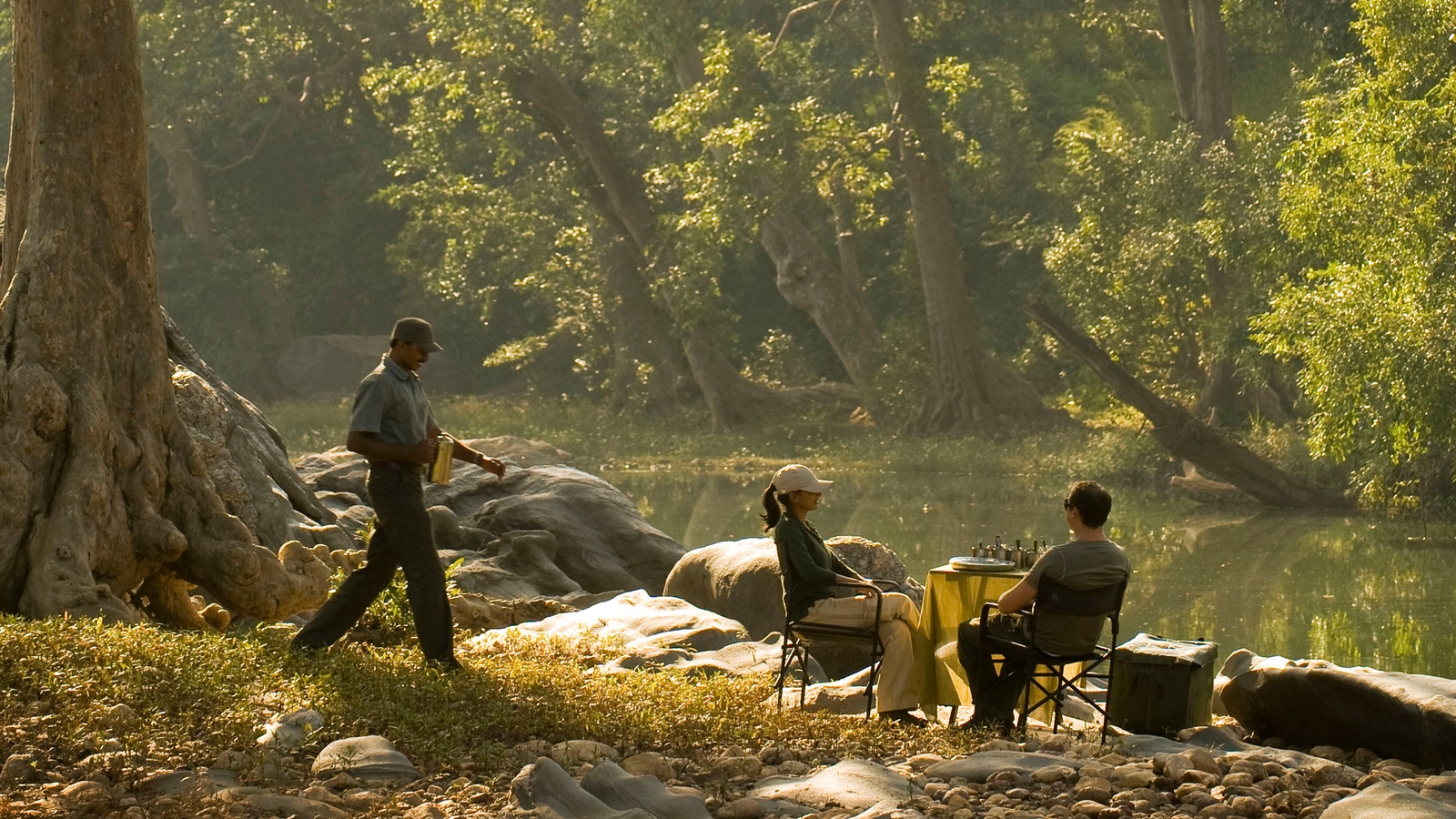 Delicious regional fare is served on the spacious dining decks or in the heart of the sal forest lit by lanterns. There’s also a swimming pool to watch wildlife from and library in which to find out more between twice daily game drives. You can also enjoy a personalized cookery lesson from the chef and enjoy a relaxing spa treatment in the wilderness.