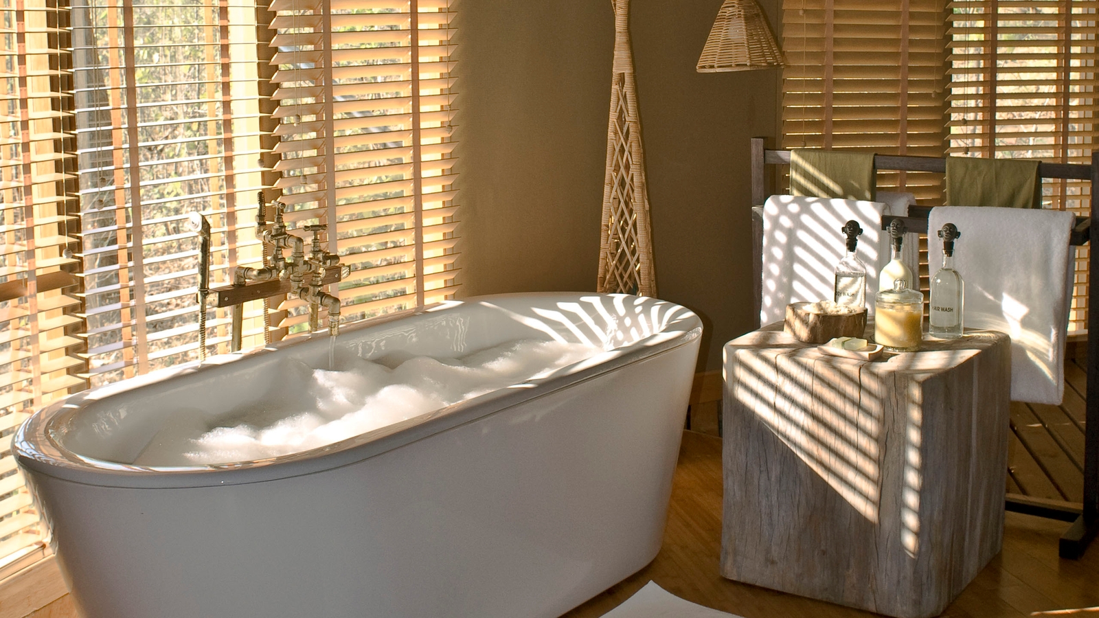 The camp itself has 18 tents, split into two groups of nine to ensure an intimate safari experience. Each feature bamboo floors and canvas walls with glass doors leading out onto a floating veranda and beautiful views of the river.