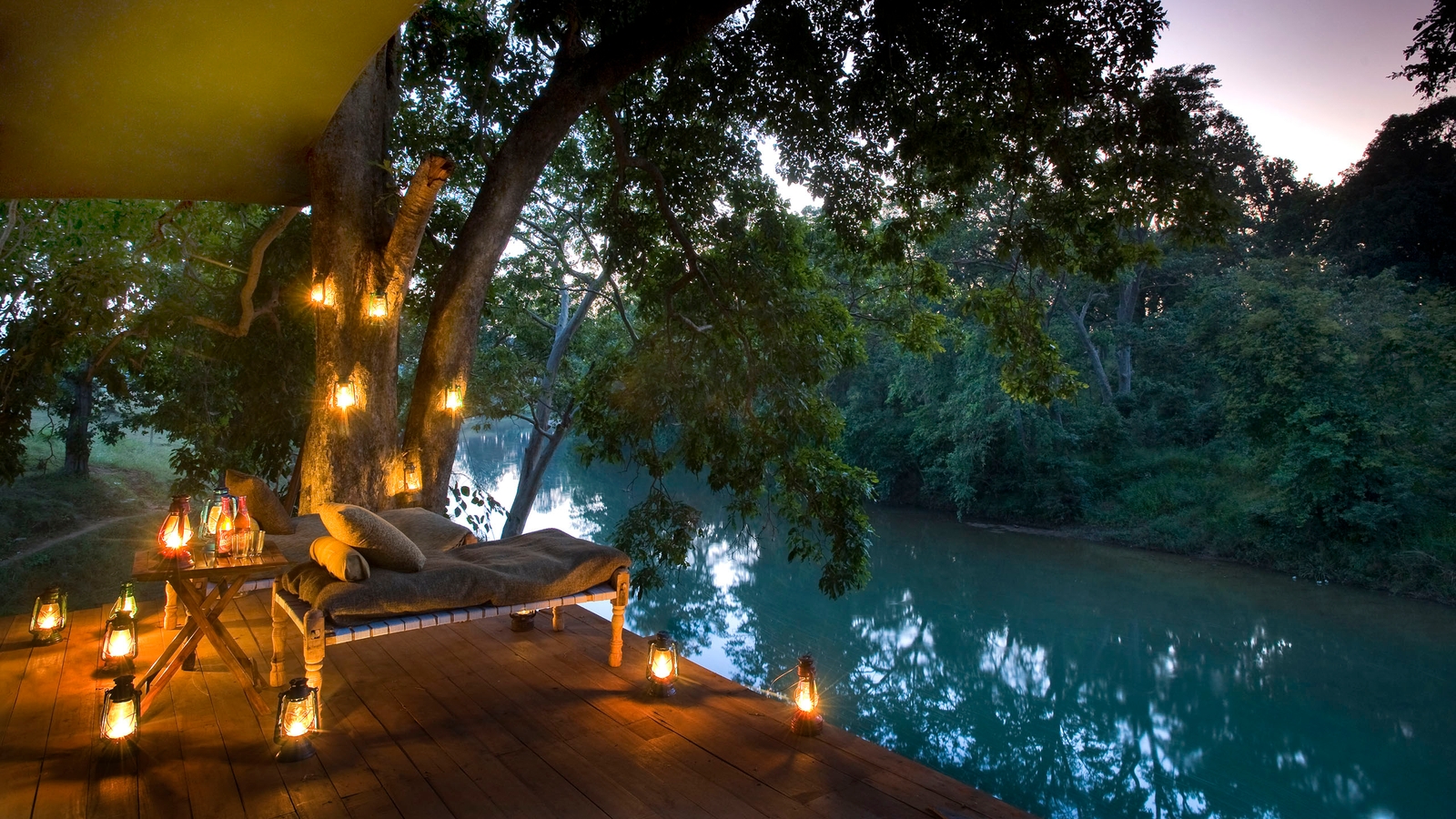 Overlooking the heart Kanha Tiger Reserve from the banks of the Banjaar River, Banjaar Tola is an African-style luxury safari camp with a dash of chic modern style twinned with local touches such as Bastar tribal artwork, hand-crafted furniture and rich block-printed Madhya Pradesh fabrics.