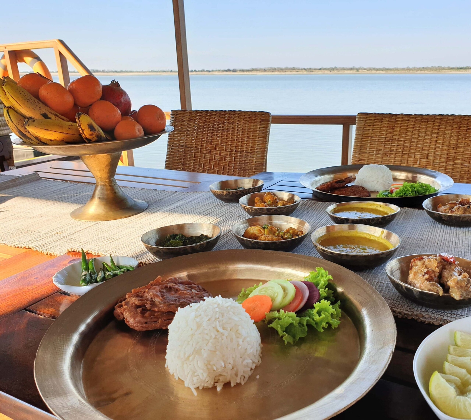 The MV Rudra Singha is a beautifully crafted traditional Assamese pansoinau, a large flat-bottomed wooden boat, perfect for exploring the rural countryside in a unique way. This sturdy and expertly built private houseboat is designed to glide effortlessly through the shallowest channels of India‘s Brahmaputra River.