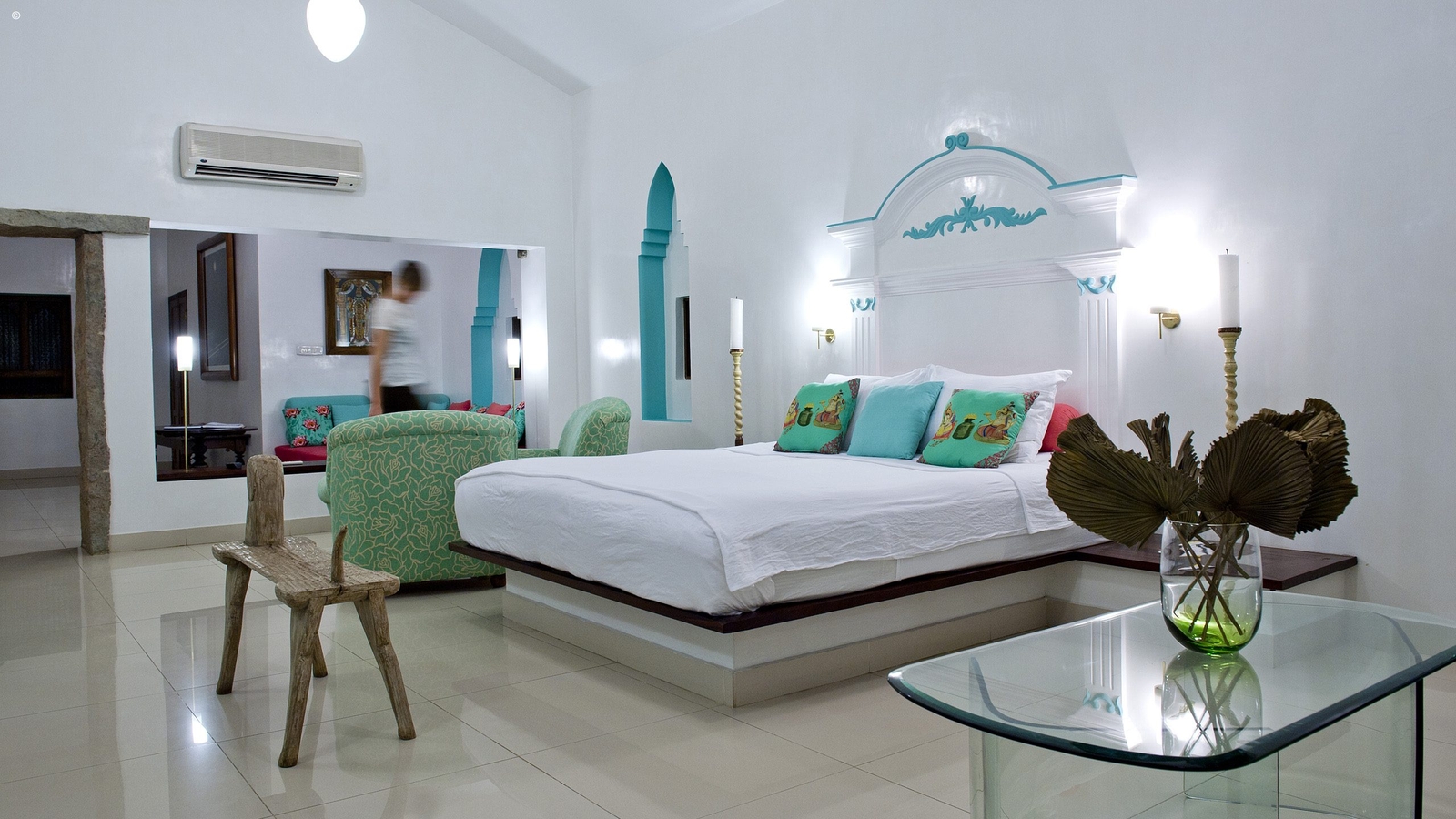 All rooms and suites come with a terrace or balcony that looks out over the water where boats glide up and down and palm trees sway in the breeze. Whitewashed walls keep rooms bright and cool, perfectly complimented by colourful textiles, antiques and intricate wooden carving.