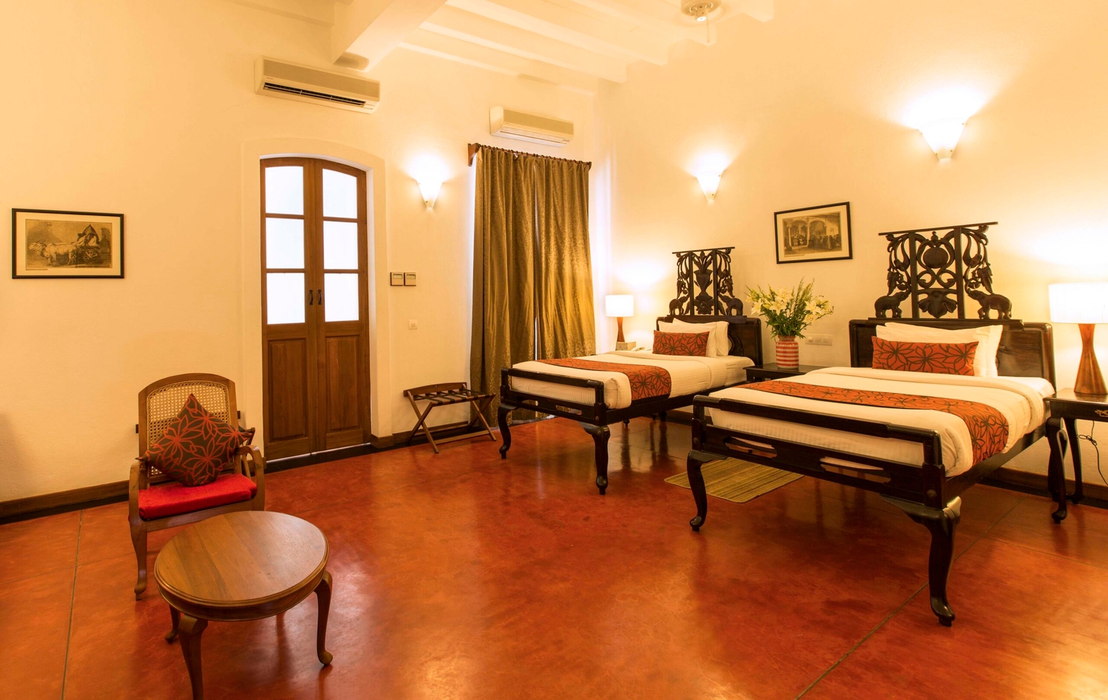 Pondicherry’s unique street signs, presented in multiple languages, reflect its cosmopolitan nature and serve as a nod to global travelers. The city’s urban landscape is a tribute to its rich diversity, where historic buildings coexist with charming sidewalk cafes, trendy designer boutiques neighbor traditional sari shops, and upscale commercial spots blend seamlessly with roadside bangle sellers and temple pilgrims in a vibrant, bazaar-like setting. These rich contrasts are woven into the very fabric of Palais de Mahe, mirroring the duality of this enchanting seaside city in southern India. The hotel’s style remains true to its historical roots, while the experience it offers is a captivating fusion of the old and new, making you feel like a traveler through time.