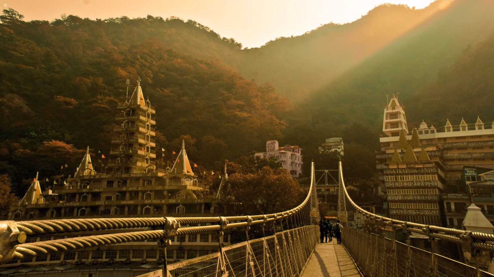 In the northern Indian state of Uttarakhand, Rishikesh straddles the Ganges, linked by suspension bridges and flanked by the green foothills of the Himalayas.