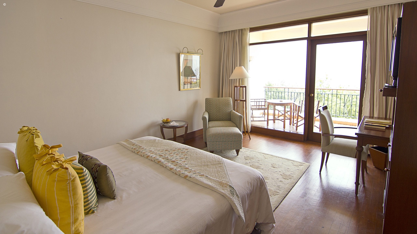 78 rooms, suites and villas are classically elegant, with hints of colonial hill station architecture to make the most of the surroundings, and offer panoramic views of the valley or palace from private balconies and exquisite bathrooms. Four suites enjoy their own private gardens and the three luxury villas have their own pool.