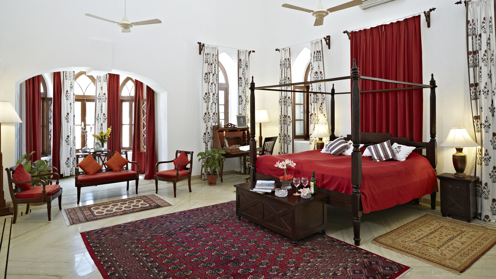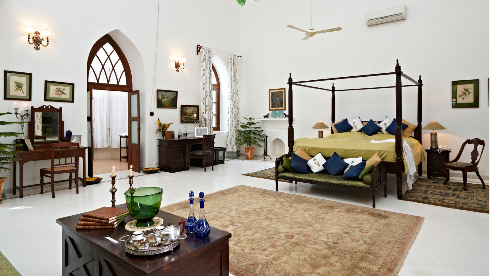 Life is unhurried here, and you could spend all day lazing by pool, exploring the working estate on walking trails and picnicking before a lazy sundowner. You can also boat on the lake, visit nearby forts and temples, or go birdwatching. Dining is also a real highlight with home made Rajasthani, continental and traditional meals created by a chef who has cooked for three generations of the family.