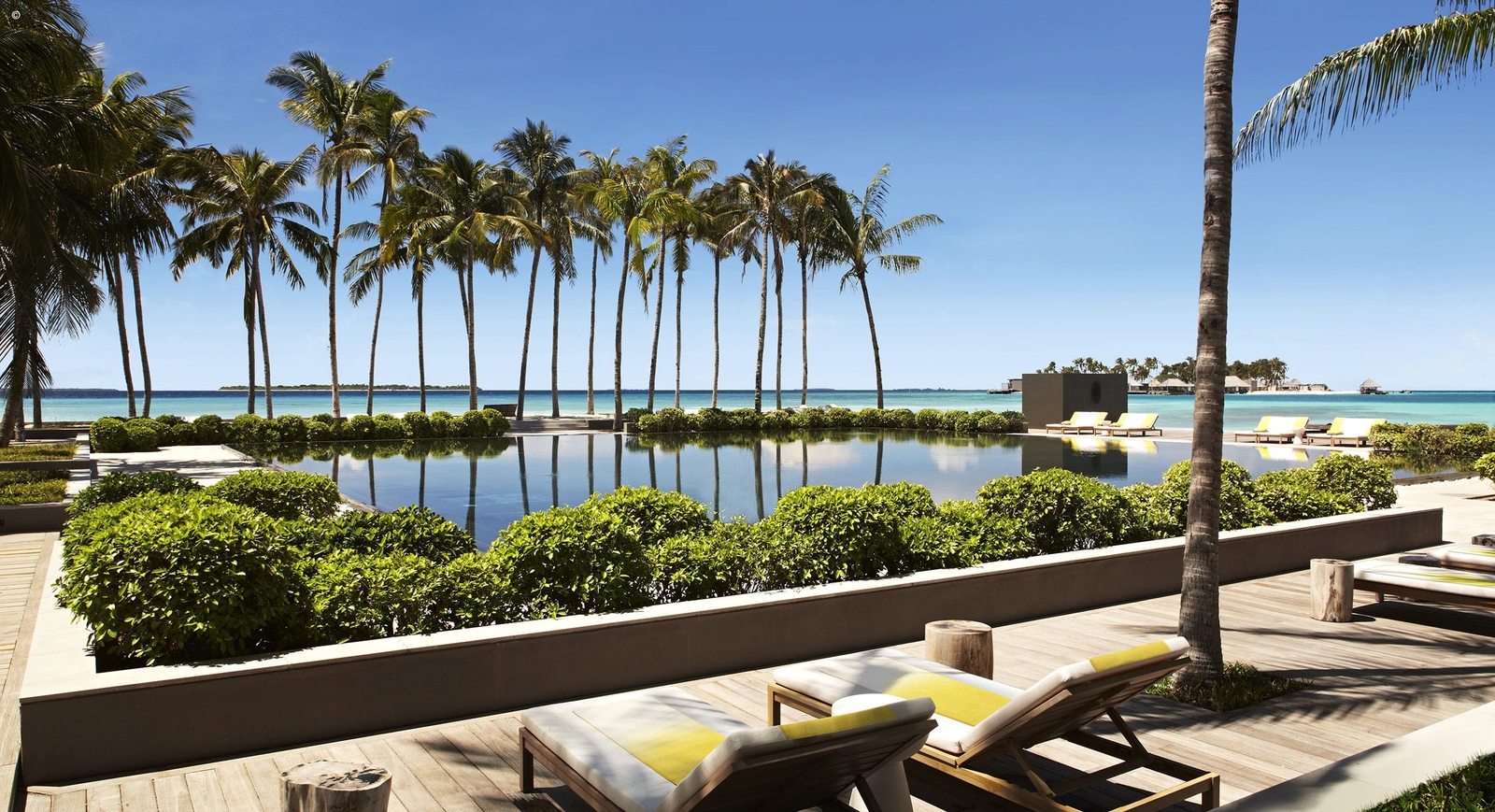 Every element of the resort oozes chic style, from the sand-disc artwork to the palm-fringed slate-lined pool and marbled bar. The 45 villas, each with its own private infinity pool, overwater deck, private beach and exquisite bathroom, have drawn celebrities and royalty including Prince William.