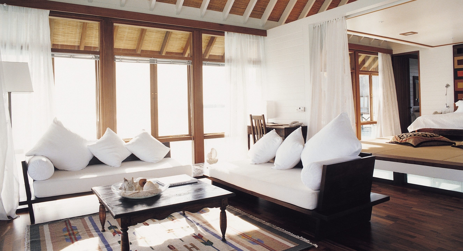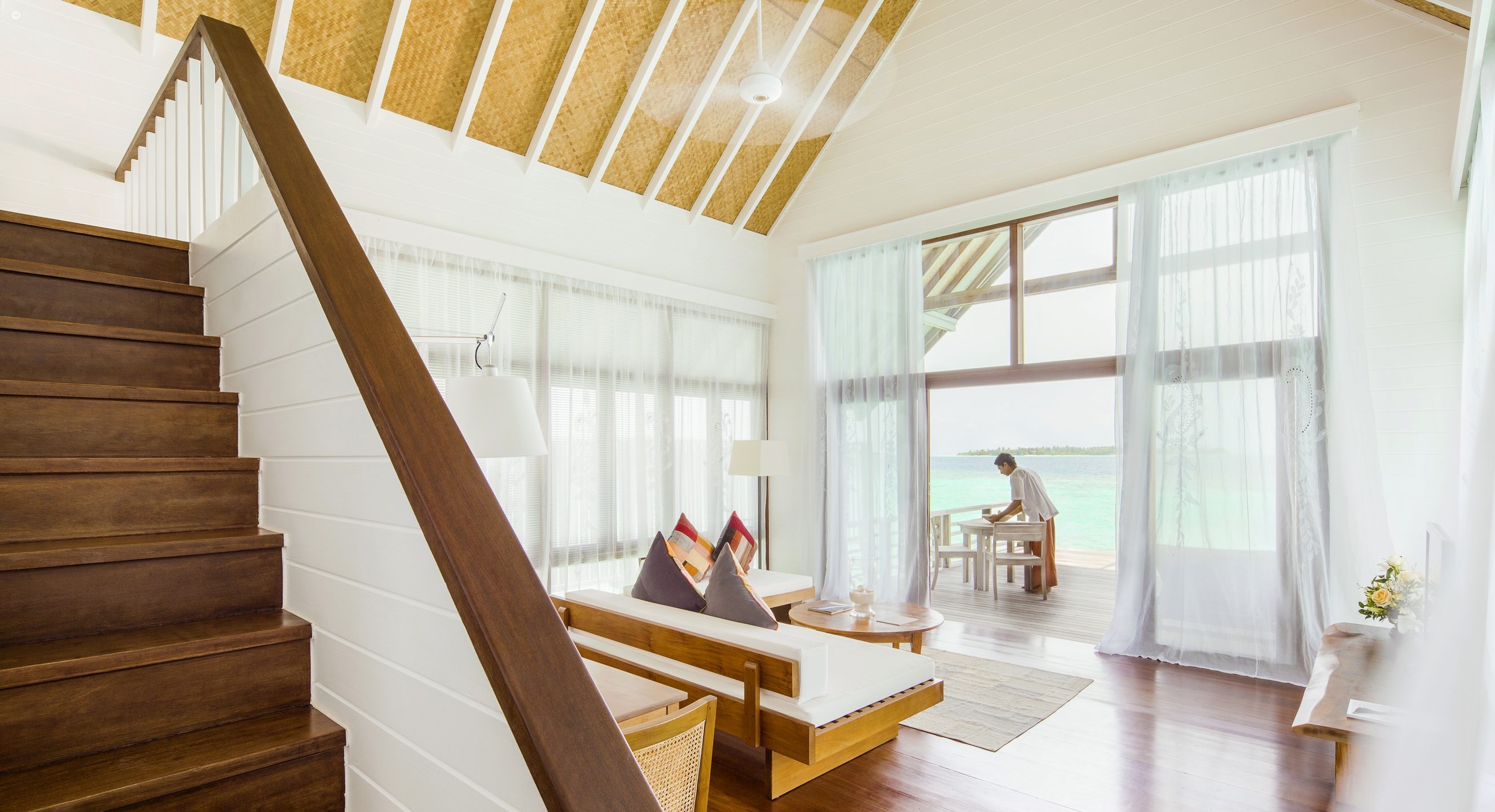 The suites on Makunufushi island resemble a collection of Kerelan boathouses, each with a private sundeck, vintage-style ceiling fans, whitewashed walls, and lavish en-suite with roll-top bathtub. The ultra-private one-bedroom villas also offer dining bales and outdoor showers.