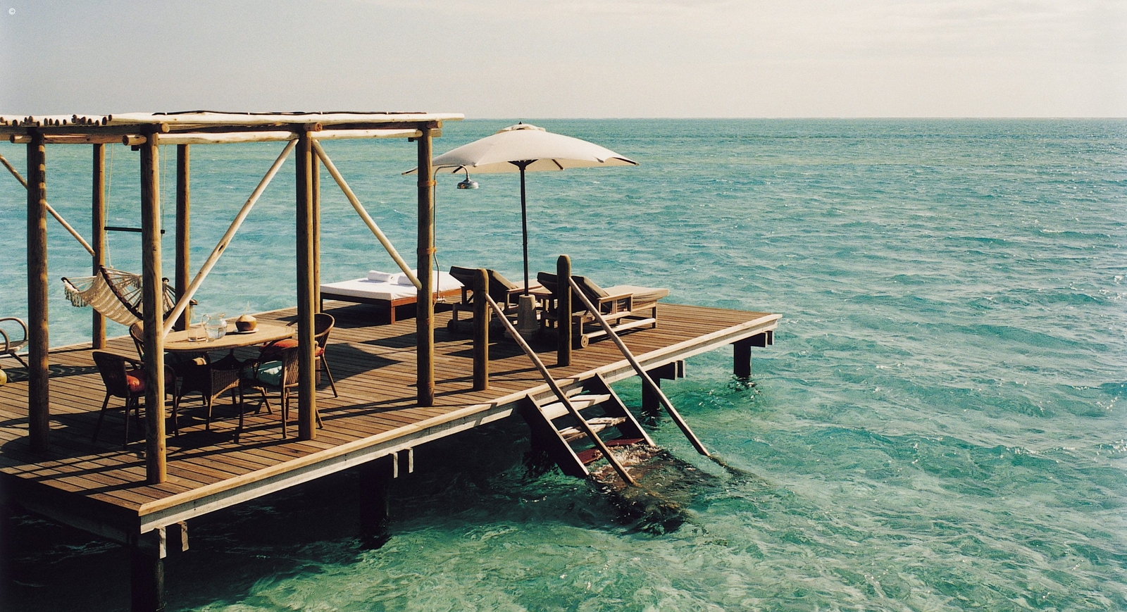 The embodiment of minimalist elegance, the 33 overwater villas sit on snaked wooden decks, where you can slip straight into the soothing turquoise lagoon for world-class snorkelling and diving on the private reef.