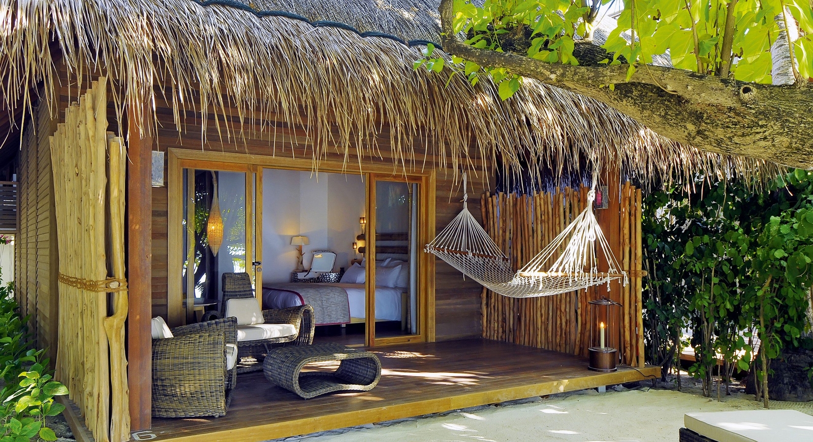 The wooden, bamboo and thatched roof bungalows unite a tranquil feel with modern-day amenities. The villas that sit on the wooden decking over the sea allow you to slip straight into the shallow lagoon for snorkelling. Beach villas are more simplistic with front terraces leading onto the sand.