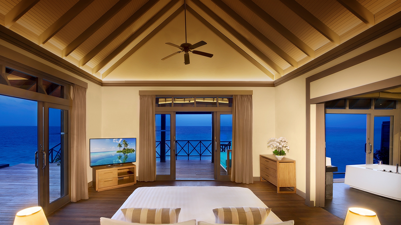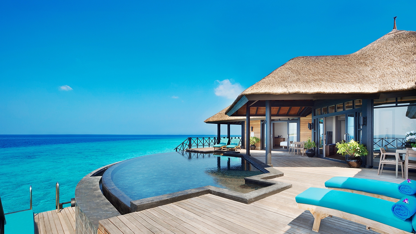 There are a collection of 84 over-water villas, beach bungalows, suites and secluded residences, all with their own pools and largest of which has three bedrooms and its own spa.