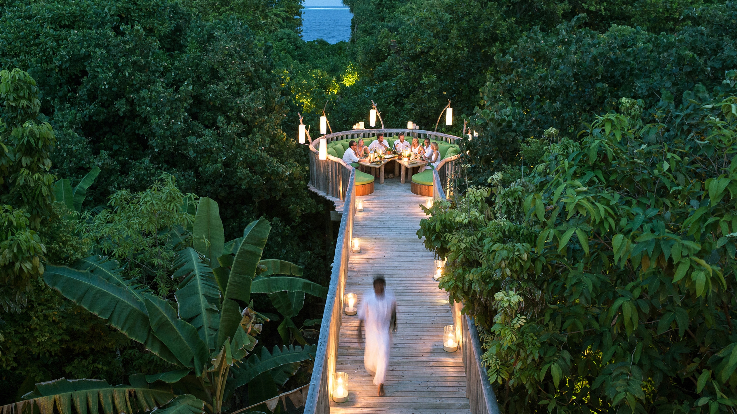 When it comes to dining, guests at Soneva Fushi are spoiled for choice. Mihiree Maitha offers everything from flakey pastries at breakfast to wonderfully fresh sushi and grilled fish for lunch and dinner. Desserts are a speciality too, with home-made ice cream and sorbet made using fresh fruit from the island. For a truly unique dining experience, you can choose to dine at Sobah, a traditional Maldivian restaurant located on an uninhabited island 15 minutes away by speedboat.