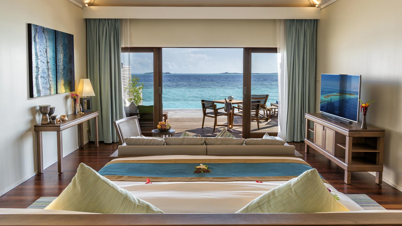 The resort consists of a selection of beach, lagoon and over water villas. Beach villas are nestled among the lush, tropical vegetation so you can drift off to sleep to the sound of swaying palms. Lagoon and over water villas offer direct access to the turquoise waters of the Indian Ocean. Wooden walkways connect the villas to the main areas of the resort.